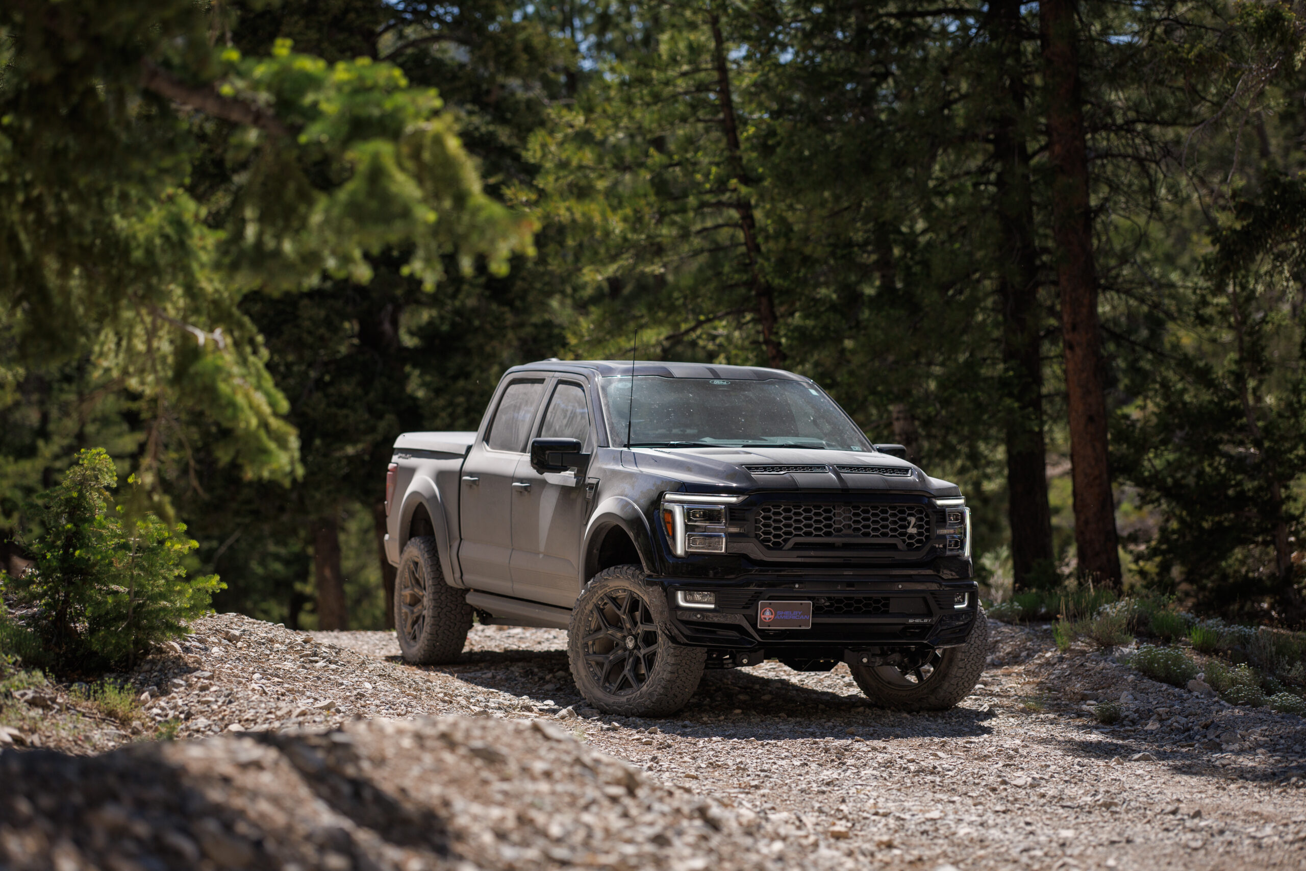The Shelby F-150 is a dynamic powerhouse designed for versatility in any scenario. With its revamped appearance and 785 horsepower supercharger system, it offers remarkable adaptability and strength, whether cruising through city streets or conquering rugged off-road trails. Its upgraded suspension system and BORLA tuned CAT-back exhaust ensure a smooth and commanding ride, while maintaining potent performance capabilities.