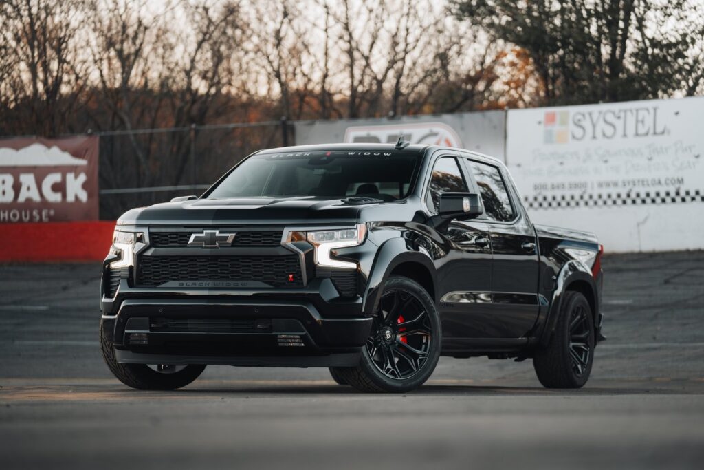 The Black Widow Chevrolet Silverado 1500 SR features a lowered, aggressive stance that brings a whole new level of attitude to the Black Widow lineup. This design not only enhances its visual appeal but also improves handling and cornering performance, making it a true powerhouse on the road. The sleek, lowered profile gives the Silverado a commanding presence that demands attention, while maintaining the robust capabilities that Chevrolet is known for. It’s more than just a truck; it’s a statement, combining style and performance in a way that only Black Widow can deliver.