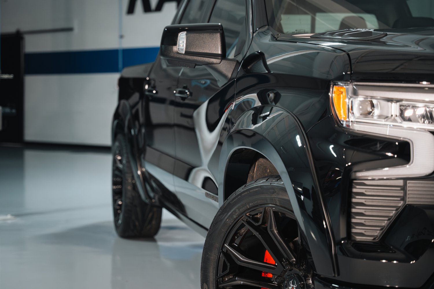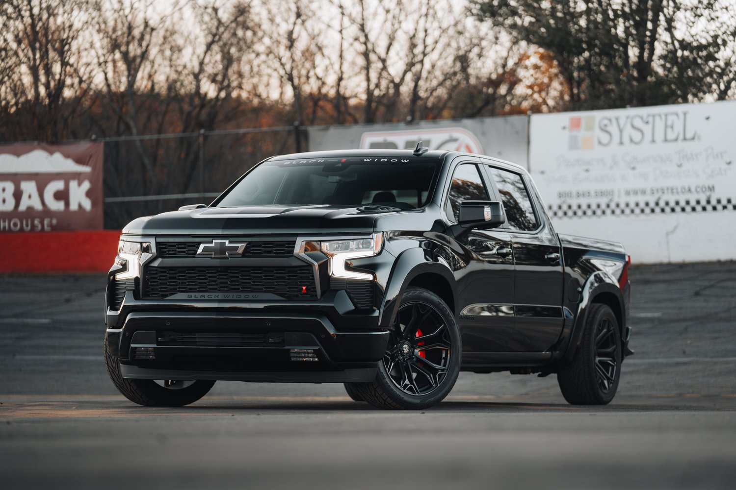 Equipped with Ride Tech, the Black Widow Chevrolet Silverado 1500 SR features an advanced suspension system engineered to elevate your driving experience. This system enhances cornering and delivers sharp, responsive handling for both city streets and track performance. No performance truck is complete without striking wheels, and the Black Widow Silverado rides on bold 22” custom Black Widow wheels. Paired with high-performance street tires for exceptional grip in all pavement conditions, the setup is finished with custom Black Widow Red Caliper Covers, adding a final touch of style and individuality.
